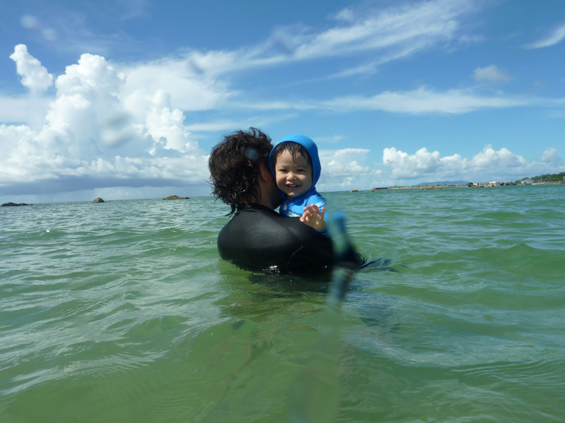 通常厚さ5mmが一般的なウェットスーツですが、6.5mmにすることで低水温でもなんとかなる代物です。
