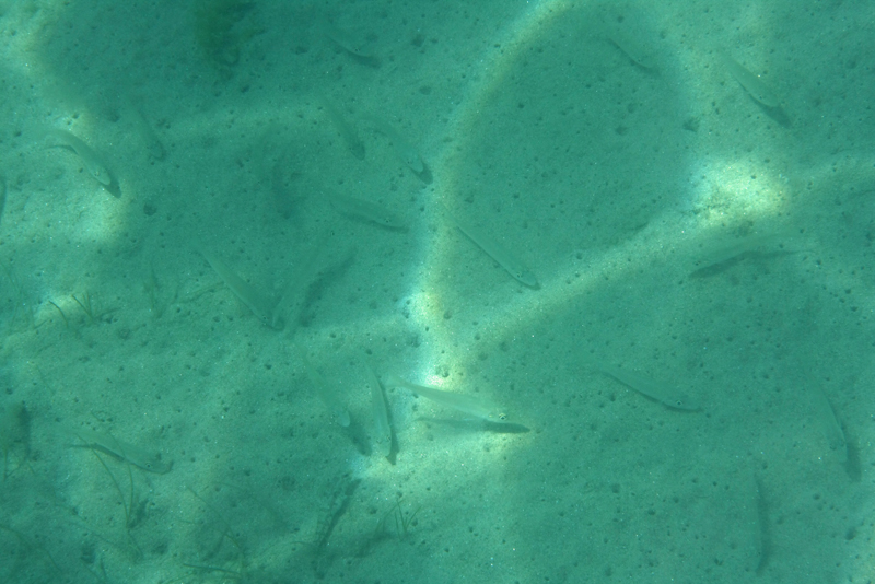 少し泳ぐと底にキスが群れてます。