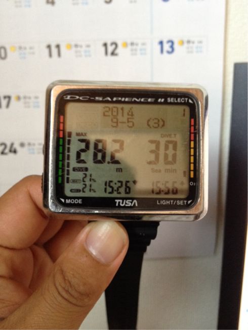 画像はアンカー回収2本目に潜ったダイブコンピュータの表示
