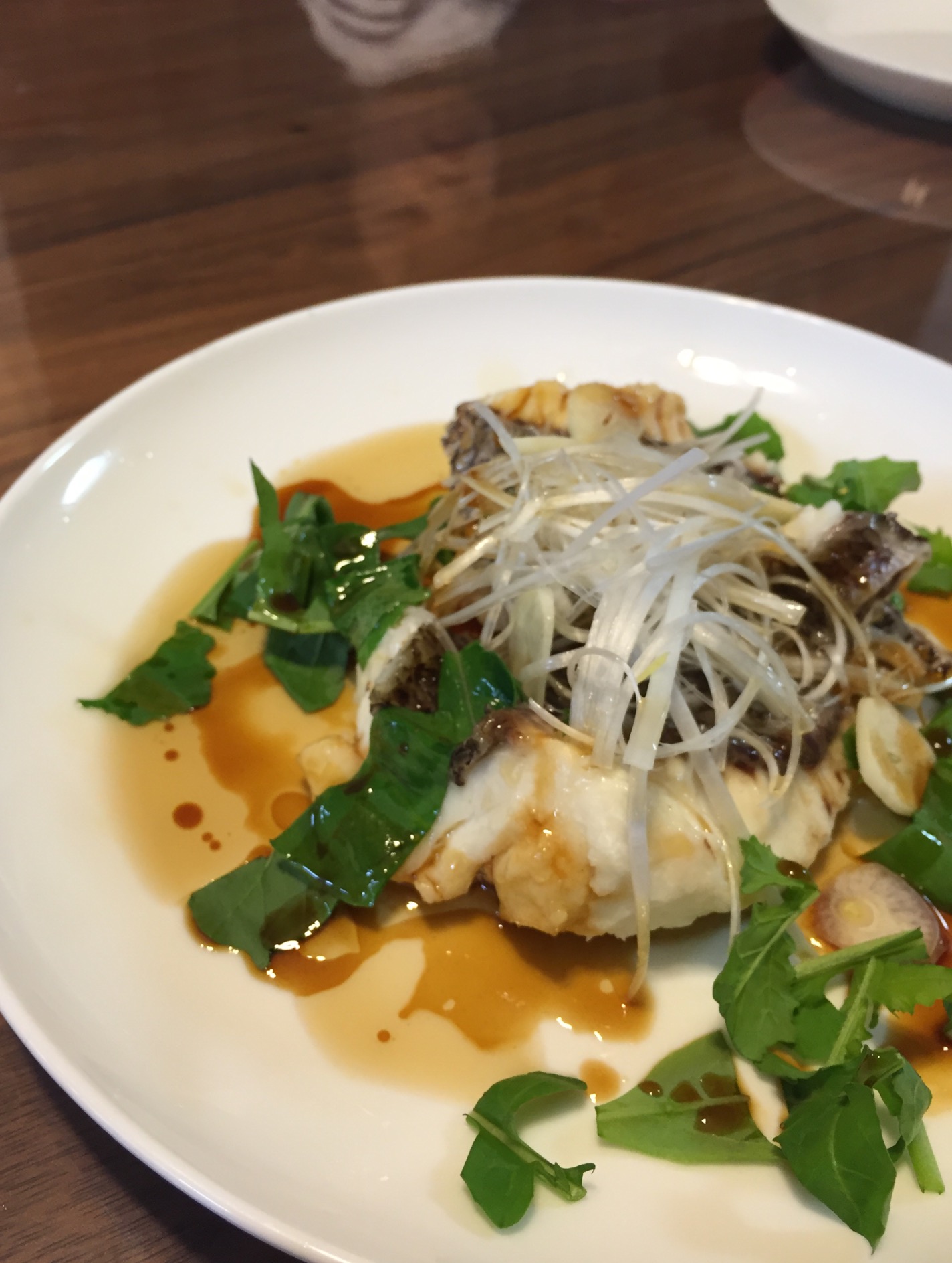 オイスターソースと酢醤油をベースにしたタレをかけ