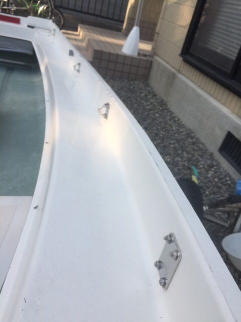 ・ビルジ自動排水取付・イケス塗装(ウレタン)・アイプレート取付(8箇所)・スカッパー増設・振動子スルハル・ロッドホルダー加工取付・イケスアルミレール取付・魚探台ポール取付・スノコ作成