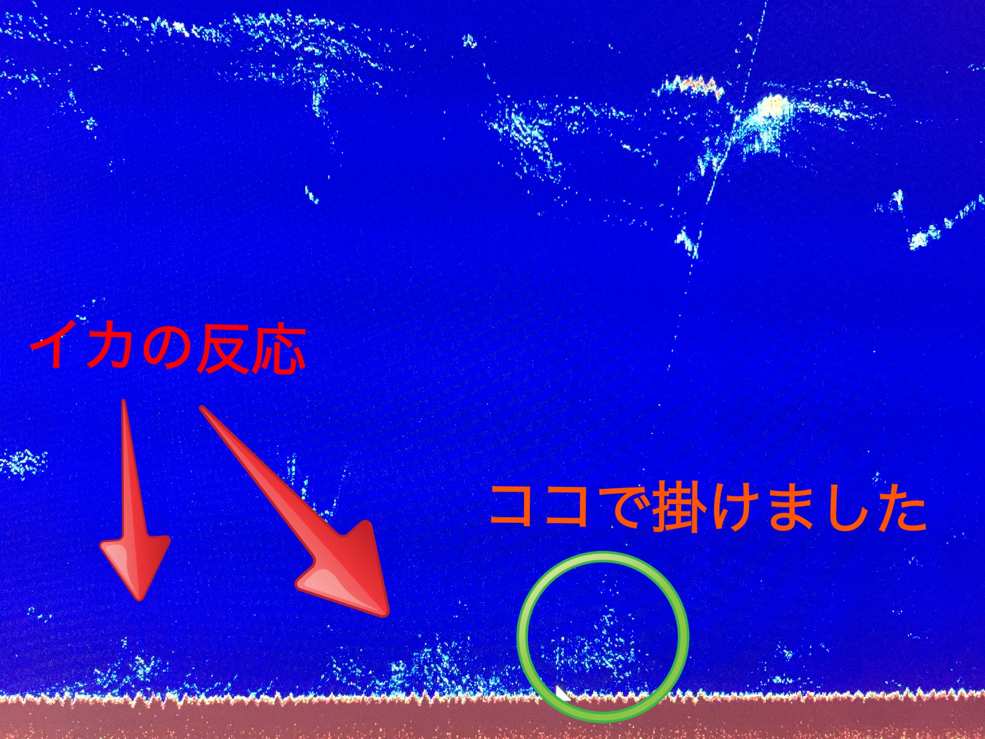 ケンサキの反応、釣り上げてる軌跡が映っていました