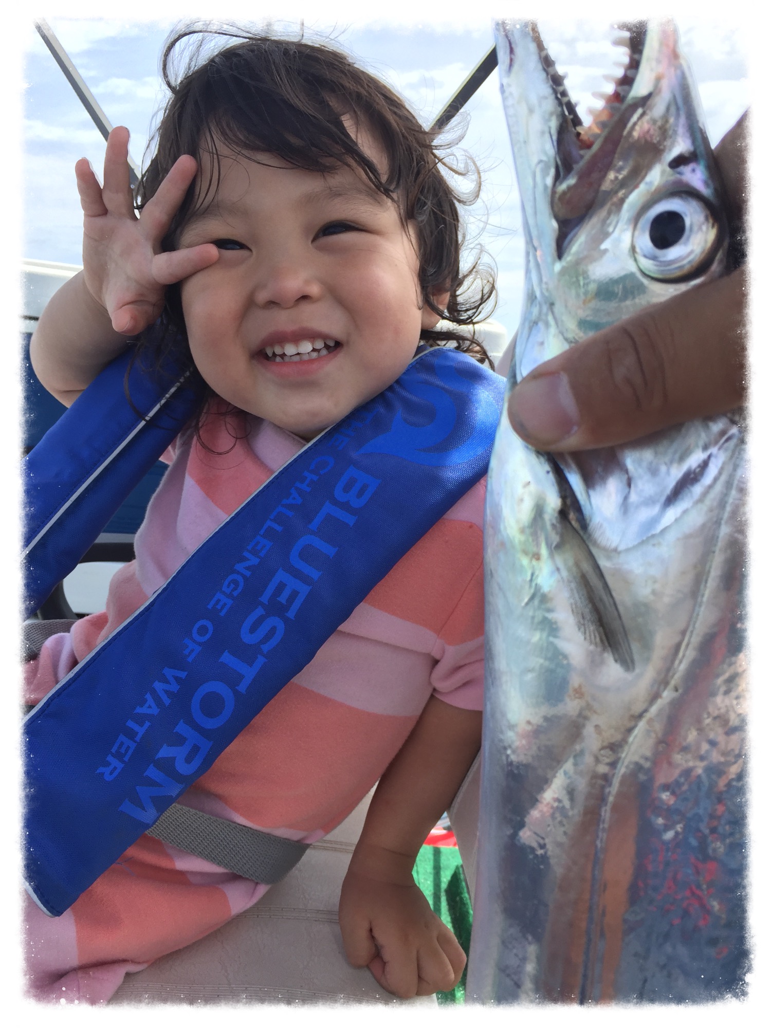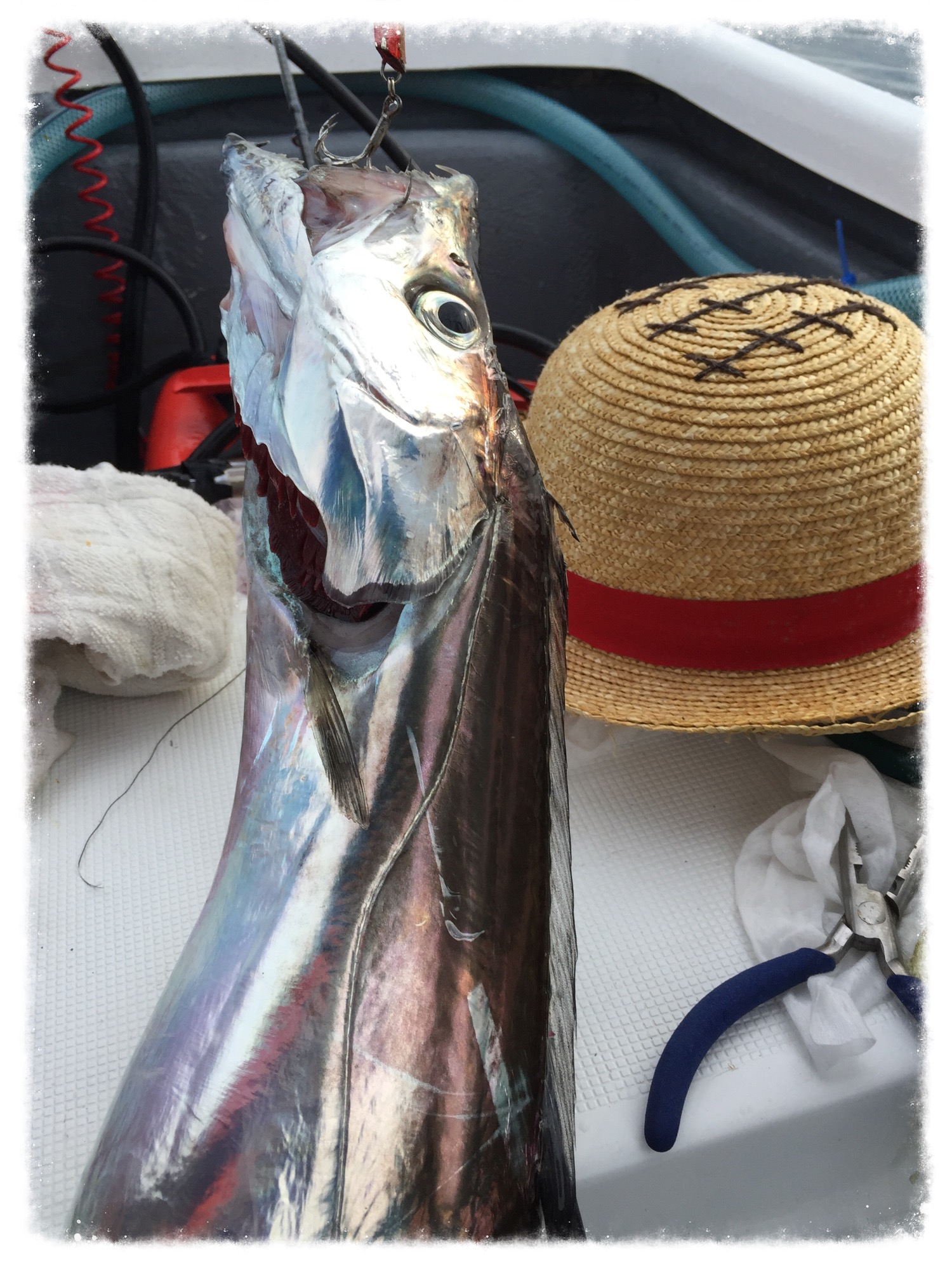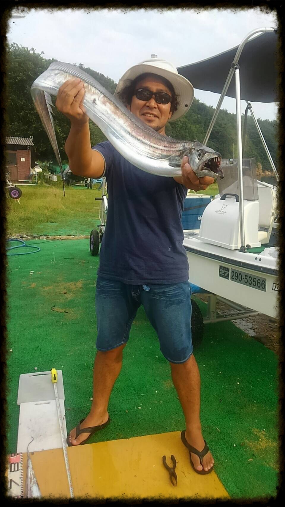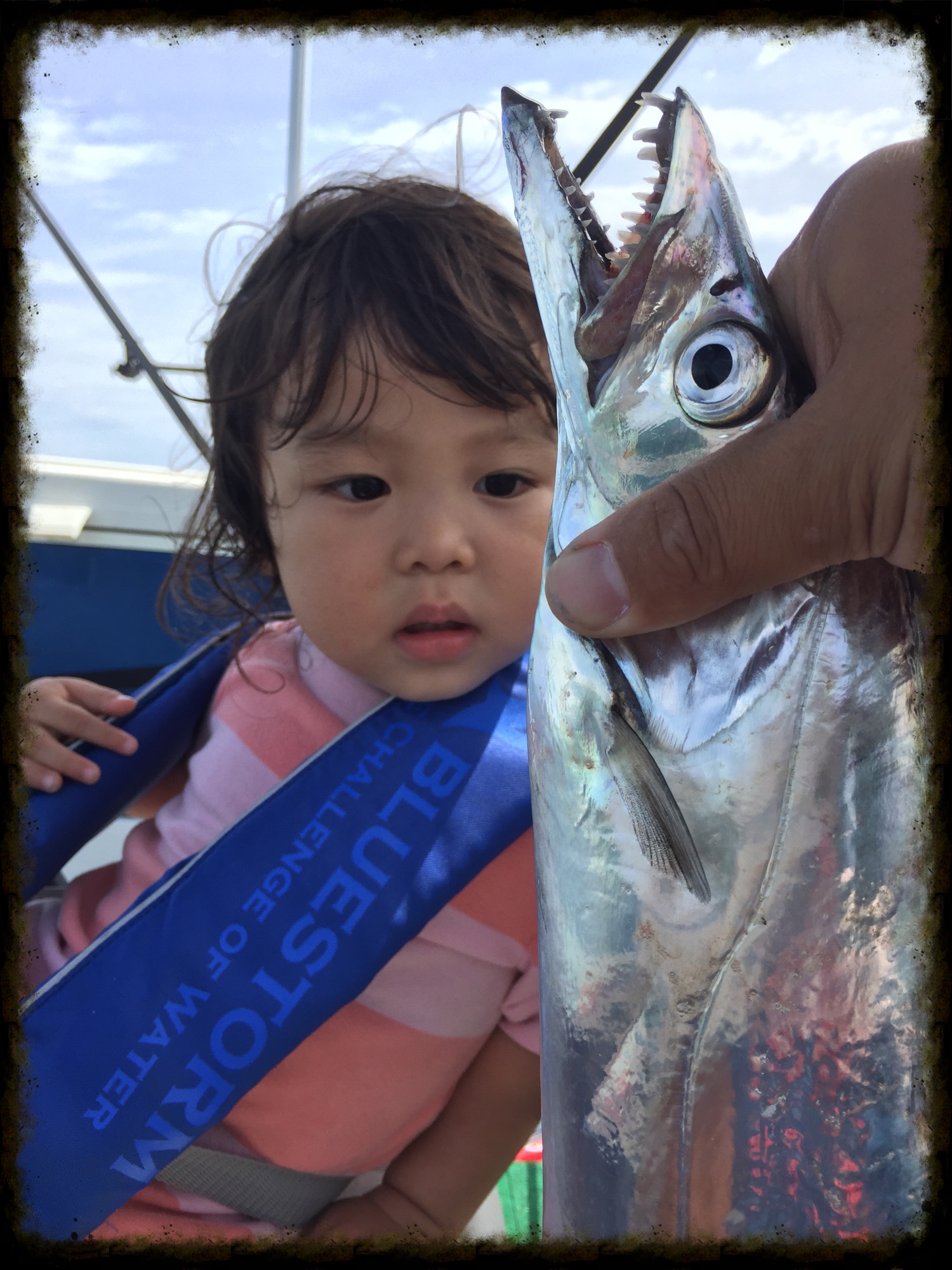 初生きてるタチウオとご対面で 怖がってますw