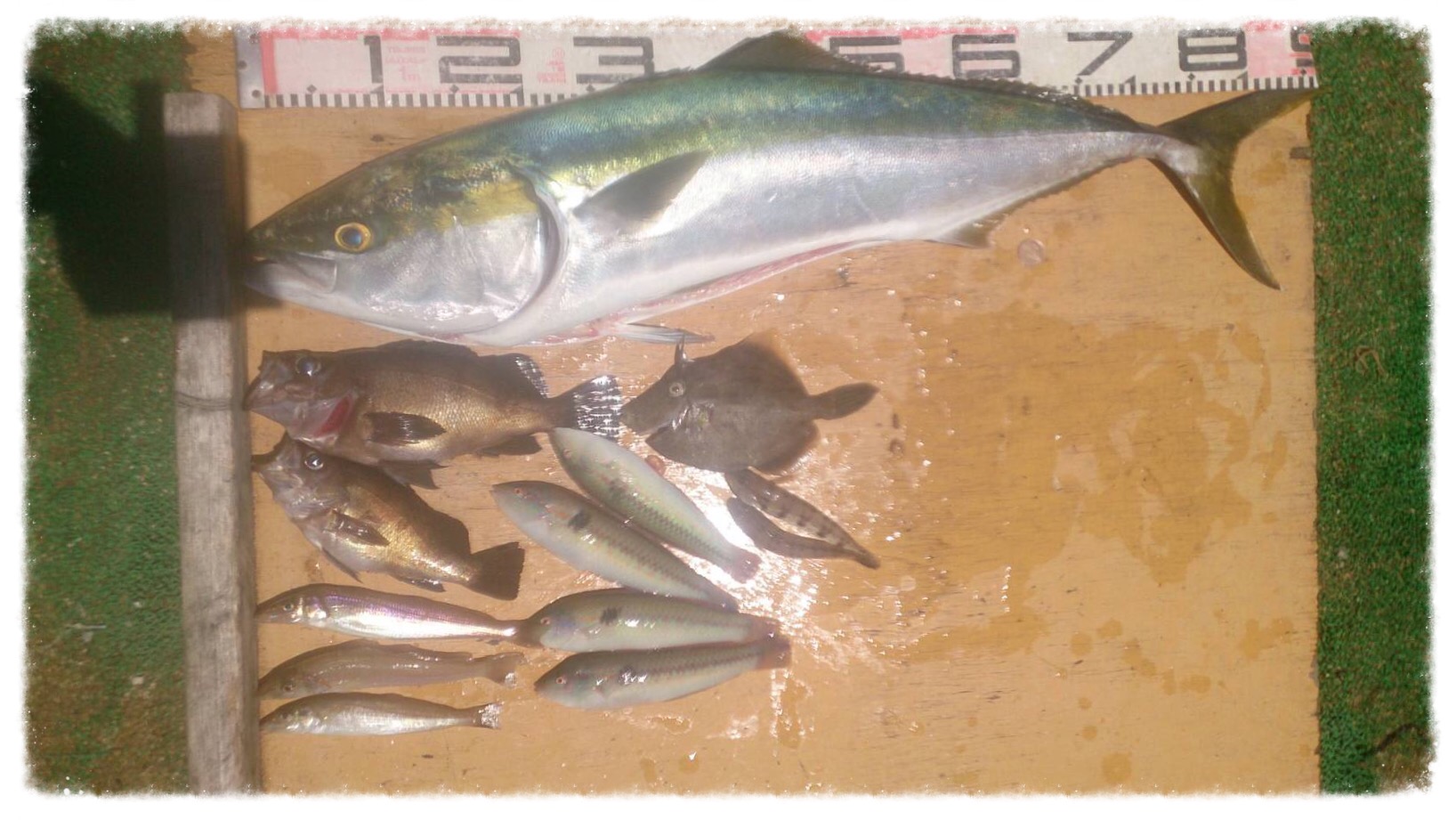 前回山陰でファイトしたハマチよりは少し楽に揚がりました