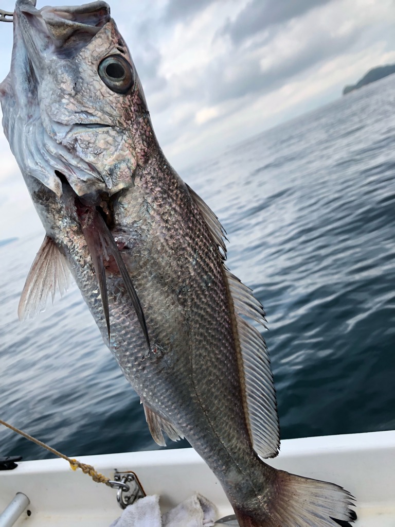 残念ながら尻尾の先が写って無くて魚種が確定しませんでした。(クログチだろうとの事でしたが)