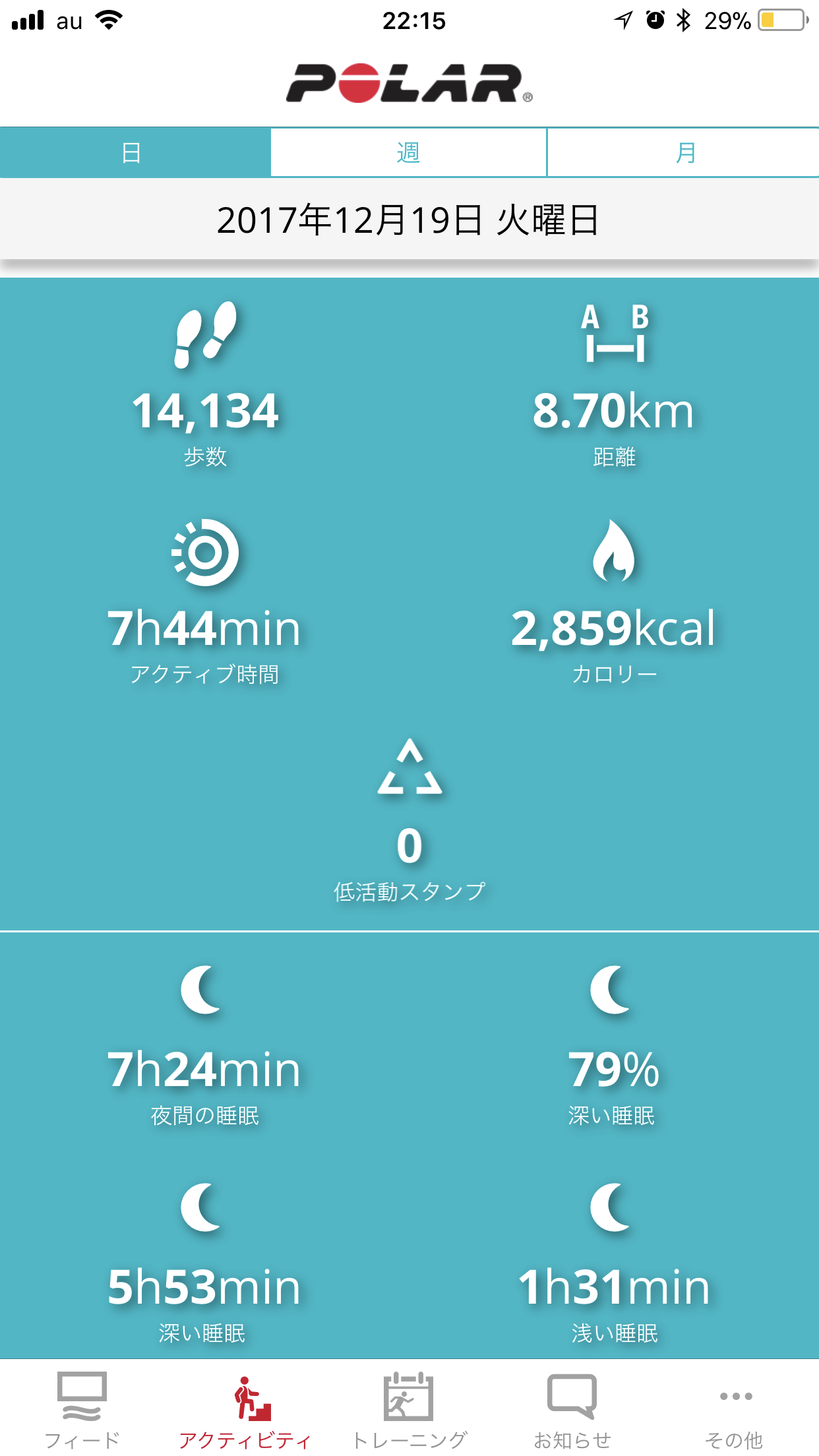 睡眠時間や活動カロリーも出してくれます